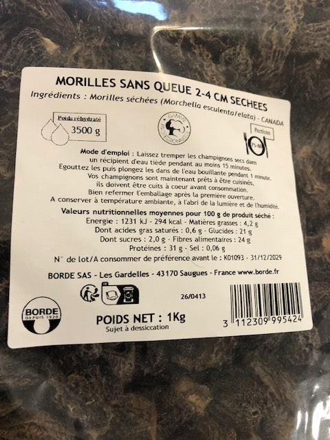 morilles speciales 2-4 cms origine canada
